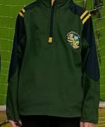 All pupils in will wear a school tracksuit as their school uniform every day. The tracksuit consists of a green and yellow jumper with the school logo, a navy t-shirt with the school logo and a plain navy tracksuit pants.